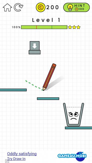 The glass is sad because it’s empty. Your job is to draw a line to make the glass filled up with liquid and smile again!