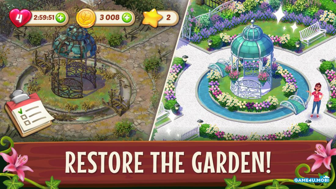 Lily’s Garden – puzzle “three in a row” with beautiful graphics and plot. The main character Lily is a legacy from deceased aunt’s estate. Arriving at this place, the girl discovers that the area around the house is in poor condition. To restore it you will need to try very hard, so the player must help the heroine. Planting the seeds and young bushes, the gamer will be to gradually transform the site. This should be done by forming chains of identical items in each level. In addition, you will help Lily to get acquainted with neighbors and to have a romantic relationship with the neighbor guy.