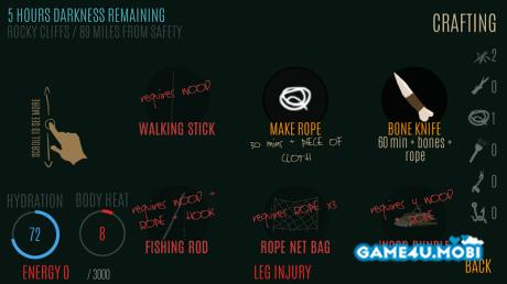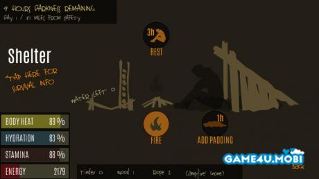 Try survive and travel to safety. Wilderness survival themed simulation where you need to decide how you spend your time and what action is most crucial for you now in order to survive: building a shelter, finding food, water, traveling, collecting firewood.