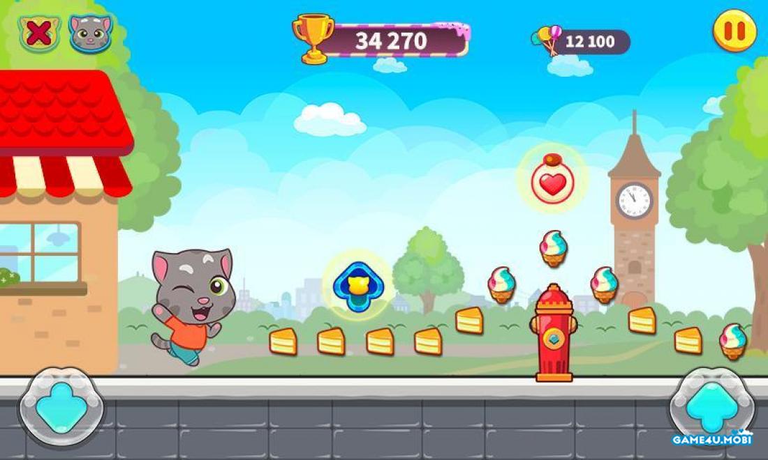 Người chơi sẽ bước vào một cuộc phiêu lưu chạy bất tận. Chọn mèo Talking Tom hoặc những người bạn yêu thích của anh ấy và bắt đầu chạy, nhảy, trượt thông qua nhiều địa điểm, tránh chướng ngại và thu thập kẹo cũng như bổ trợ. Hãy chú ý nhặt rương báu để lấy tiền xu, kim cương, nhân vật mới và các nâng cấp nhân vật miễn phí. Đuổi theo tên cướp trong một hành trình vui vẻ cùng những người bạn động vật dễ thương, mỗi người có một khả năng đặc biệt tuyệt vời. là game hành động hấp dẫn, vui nhộn và gây nghiện dành cho đi động. Tên cướp vừa xông vào cửa hàng của mèo Talking Tom và lấy cắp kẹo. Nhưng vì quá vội nên hắn làm vương vãi kẹo khắp nơi trên đường trốn chạy, dọc theo con phố, tại bãi biển hay thậm chí là ở công viên giải trí. Nhiệm vụ của bạn là giúp mèo Tom lấy lại toàn bộ số kẹo bị cướp.